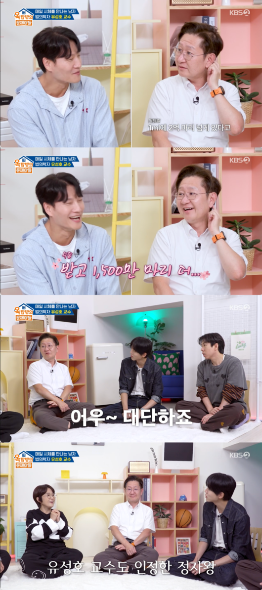유 교수는 김종국이 1ml에 2억 마리가 넘는 정자 수로 '정자왕' 타이틀을 얻은 것에 대해 언급하며 “어우, 대단하죠"*라며 인정하는 모습을 보여 다시 한번 폭소를 유발했다.
