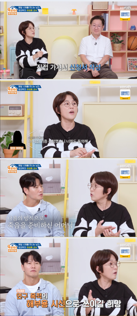 '옥탑방의 문제아들’ 송은이는 어머니가 직접 병원에 찾아가 시신 기증을 신청했다는 사실을 밝혔다.
