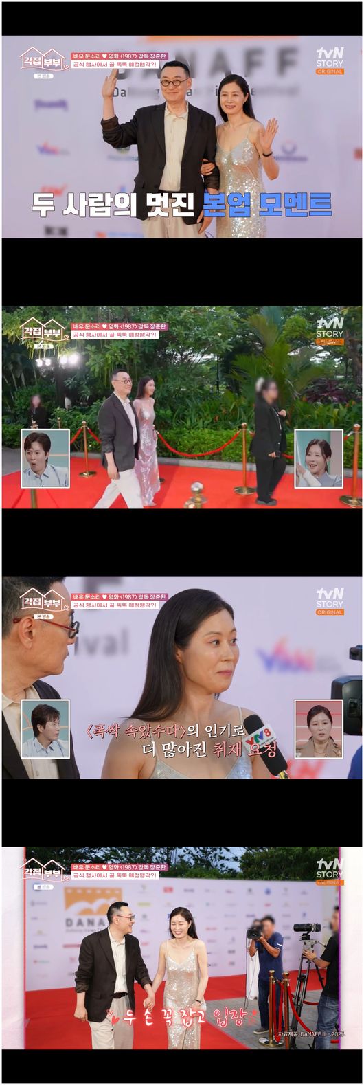 18일 방송한 tvN STORY ‘각집부부’에서는 다낭의 영화제에 초청을 받은 문소리와 장준환 부부가 등장했다. 문소리는 “저희 부부가 영화제에 초청 받았다. 그래서 다낭을 향했다. 장준환 감독은 심사위원, 저는 그냥 날라리 게스트였다”라면서 “저도 오랜만에 해외에서 만났다”라며 말했다.