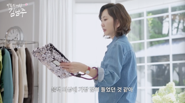 이후 김남주는 미니백은 물론, 25년 이상 된 짐가방 등을 소개했다. 특히 그는 "2007년 리미티드 에디션이다. 금은 그때도 좋아했던 거 같다"라고 전하는가 하면, 그는 "얘는 가장 스페셜한 애다. 가장 여왕"이라며 크리스탈 손잡이를 자랑하는 독특한 가방을 자랑해 눈길을 끌었다.