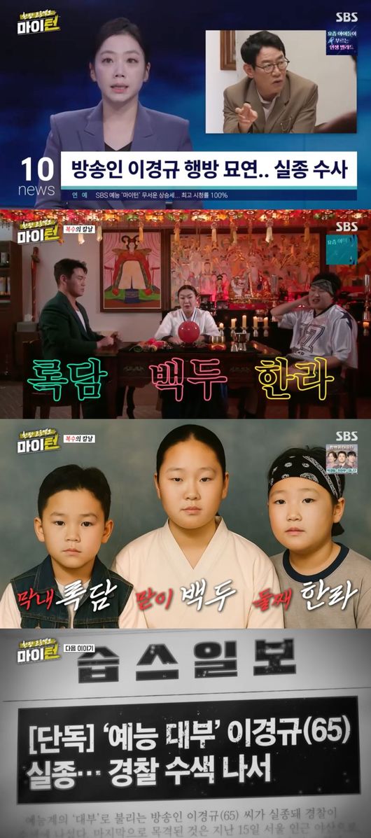 방송 말미에는 또 다른 충격이 이어졌다. “방송인 이경규의 행방이 묘연하다. 15일 인근 야산에서 마지막으로 목격됐다”라는 뉴스 보도가 전해진 것. 사건의 진상은 7일 전 여의도 백두신당에서 드러났다. 이곳은 백두장군(이수지)이 이경규에게 트로트를 점지하고, ‘한라’를 추천했던 비밀 상담소였다. 이 자리에는 한라와 천록담이 함께 있었고, 세 사람은 사실 남매였다는 사실이 밝혀졌다.