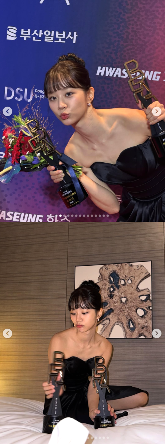 지난 18일 부산 해운대구 시그니엘 부산에서 열린 제34회 부일영화상에서 혜리는 영화 ‘빅토리’로 신인여자연기상과 여자 올해의 스타상을 모두 수상하는 영광을 얻었다.