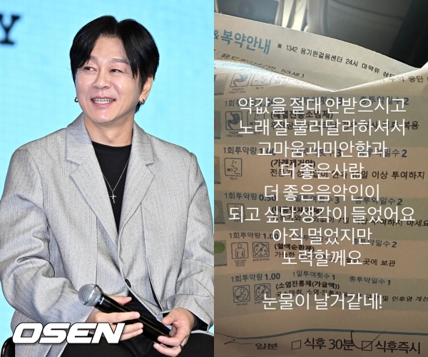 윤도현은 지난 18일 “약값을 절대 안 받으시고 노래 잘 불러달라 하셔서 고마움과 미안함과 더 좋은 사람, 더 좋은 음악인이 되고 싶단 생각이 들었어요”라고 했다.
