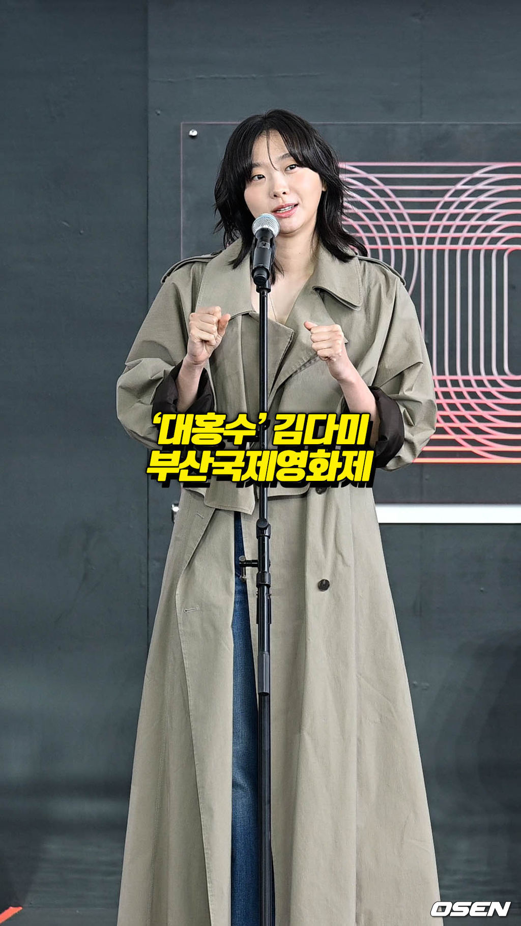 배우 김다미가 야외무대인사를 하고 있다. /cej@osen.co.kr