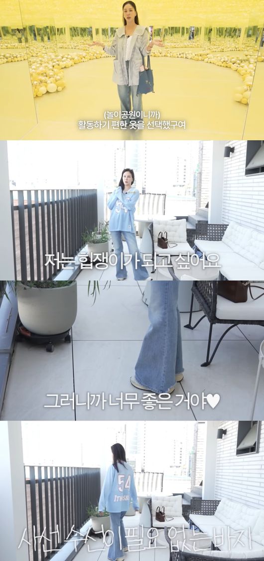 이날 편안한 차림으로 옷을 입은 고소영은 “일단은 활동하기 편한 옷을 선택했다”라며 놀이공원 맞춤 룩을 선보였다.