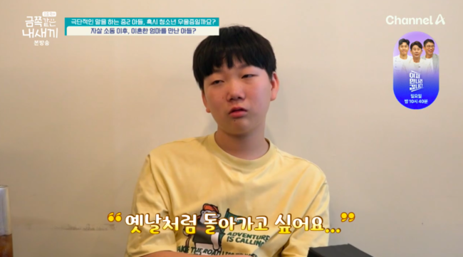 한편, 금쪽이는 아빠와 함께 타지에서 지내고 있는 엄마를 재회했다. 모처럼 재회에 금쪽이는 웃었고, 엄마는 금쪽이의 극단적 행동에 대해 “진짜 그러고 싶었던 거냐. 금쪽이가 네가 진짜 그때 그랬으면”이라며 울컥했다.