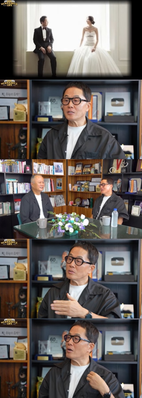 아내와의 첫 만남에 대해 "친한 지인이 교수인에 압구정동에서 잠깐 보자고 했다. 그때 본인 제자로 데려온다고 했고, 그 제자가 아내였다. 외가는 완전 다 가셨다. 나의 친한 동생의 제자였다. 팥빙수 집에서 만나 자리를 옮겨 술을 한 잔 먹자고 했다. 막걸리 바에서 술을 마셨는데, 메뉴에 있는 막거리를 다 마셨던 것 같다"며 "그때 헤어지면서 옛날 수법인데 휴대폰을 집사람 가방에 넣고 헤어졌다. '핸드폰을 놓고 왔는데 연락 어떻게 하니?' 물어봤고, 핸드폰 받으면서 밥 한끼 먹었다. 첫 만남부터 마음이 있었다"고 말했다.