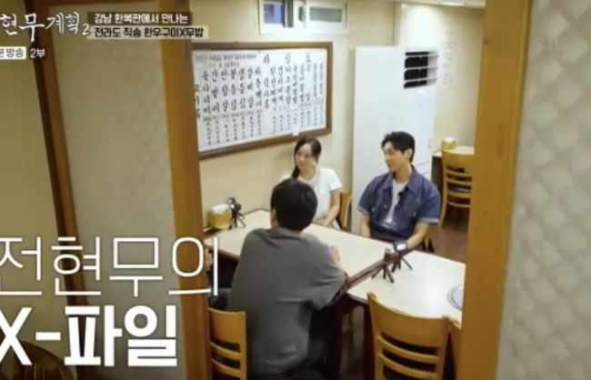 여기서 네 사람이 한참 소고기를 구워 먹던 중, 전현무는 지현우에게 “결혼 생각은 없느냐?”고 단도직입적으로 물었다. 이에 지현우는 “에너지가 없는 것 같다”면서 “일만 하다 보니깐 집에 오면 지쳐서 잠들기 바쁘다”고 솔직하게 답했고, 전현무는 “내가 맨날 하는 얘기다. 나랑 똑같다”며 “눈이 높은 것보다 더 위험한 상황이다. 이러다 세월이 흐른다”며 폭풍 공감했다.