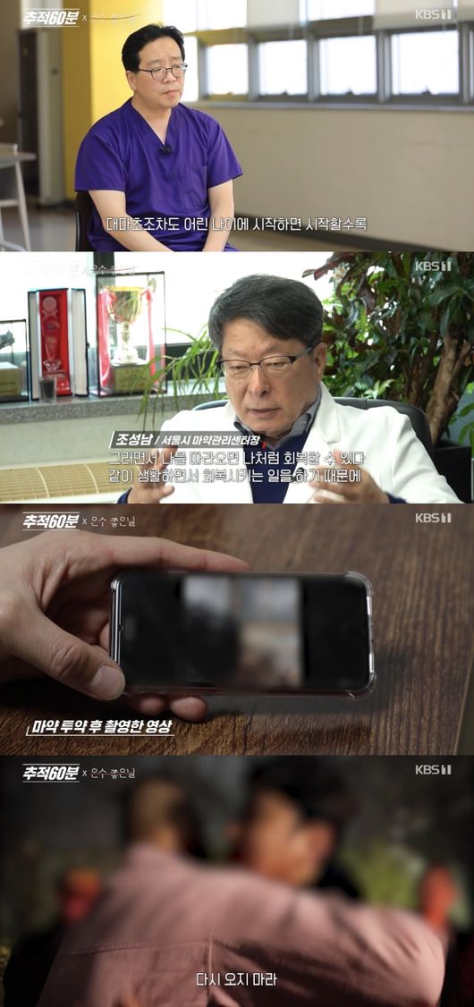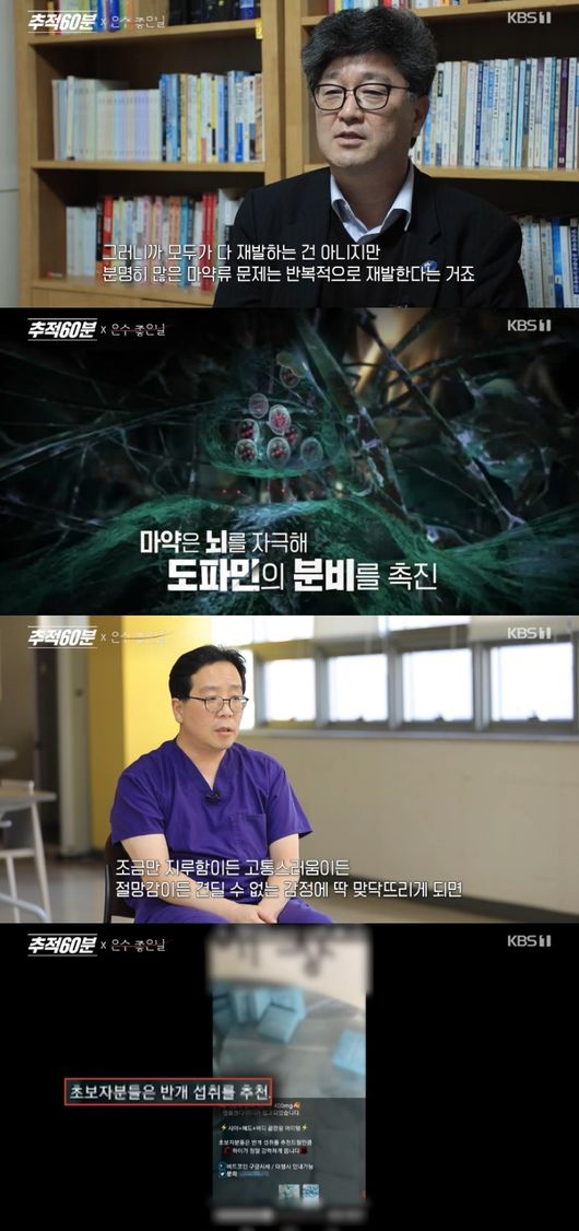 마약관리센터장은 “마약이라는 건 보상회로의 도파민을 과도하게 높이기 때문에 순간적으로 기분은 좋아지는데 그것만 하는 게 아니기 때문에 문제다. 한편으로는 도파민 만드는 과정을 파괴시킨다”라며 “마약류는 정신병을 만드는 약”이라고 심각성을 전했다.