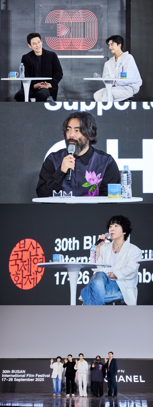 '굿뉴스'로 제30회 부산국제영화제를 찾은 변성현 감독, 홍경, 야마다 타카유키는 지난 9월 17일(수) 영화의전당 야외극장에서 진행된 부산국제영화제 개막식에 참석해 뜨거운 환호에 화답하며 공식 일정의 출발을 알렸다. 이어 18일(목)에는 변성현 감독, 설경구, 홍경, 야마다 타카유키가 '굿뉴스' 상영 전 무대인사와 GV를 통해 극장을 찾아준 팬들과 다채로운 이야기를 나누며 뜻깊은 시간을 가졌다.