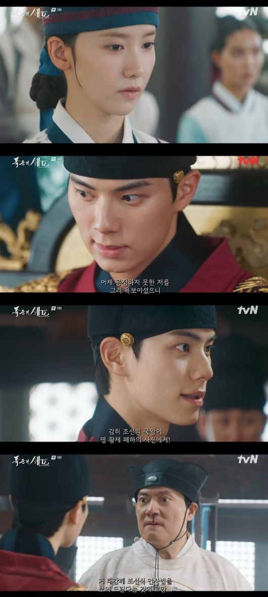 이날 연지영은 명나라와의 요리 대결에서 최종 승리를 거두며 이헌(이채민)을 웃게 만들었다. 명나라 사신은 자신의 뜻대로 일이 풀리지 않자 연지영을 공녀로 끌고 가겠다고 했고, 이에 분노한 이헌은 사신의 머리에 박치기를 하며 응징했다. 순식간에 벌어진 몸싸움에 조선과 명나라는 서로 칼을 겨누게 되었다.