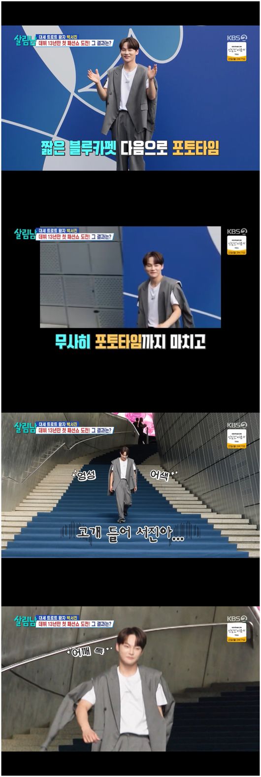 박서진은 “따라하다가 너무 힘들어서 뒤를 돌아봤는데 끝도 없이 있는 분들이 다들 칼군무를 하시더라. 정말 동작 따라하는 게 너무 힘들었다”라면서 “패션 위크에 다양한 분들이 오지 않냐. 거기서 살아남으려면 여기서 살아남아야 한다고 생각했다”라며 안간힘을 썼노라 말했다.