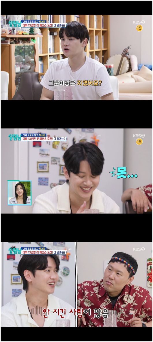 박서진은 “따라하다가 너무 힘들어서 뒤를 돌아봤는데 끝도 없이 있는 분들이 다들 칼군무를 하시더라. 정말 동작 따라하는 게 너무 힘들었다”라면서 “패션 위크에 다양한 분들이 오지 않냐. 거기서 살아남으려면 여기서 살아남아야 한다고 생각했다”라며 간신히 버텼다는 것을 언급했다.