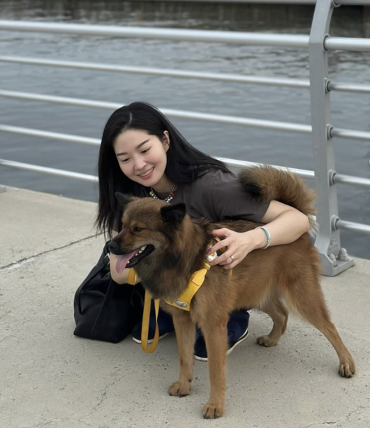 공개된 사진 속 류이서는 바닷가 방파제에서 반려견 만세와 다정한 시간을 보내고 있다. 무릎을 꿇고 만세를 끌어안으며 환한 미소를 짓는 모습이 눈길을 끈다. 또 다른 사진에는 남편 전진이 만세와 교감하는 장면도 담겨 있어 훈훈함을 더했다.