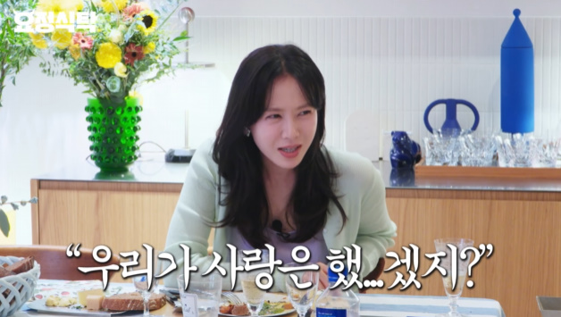 특히 그는 "현빈씨는 어디서 반했대?"라고 묻자 "안 반했을 수도 있다"고 실토해 웃음을 자아냈다. 그는 "어저께도 되게 웃겼다. 서로 바쁘면 밥먹을 시간도 잘 없으니까. 오랜만에 밥을 먹으면서 '우리가 서로 사랑은 했던거겠지?' 했다. 왜냐면 아이가 모든 위주가 되니까. 아이의 사랑은 사실 비교가 안된다. 연인, 부부, 남편. 그래서 연애할때나 결혼 초반에는 음식을 저도 레시피 맨날 찾아보고 유튜브로 안해본 요리가 없을 정도다. 근데 그 뒤로 먹어본 적이 없다. 애기 거 육전을 해서 좀 남아서 '자기야 이거 먹어'하고 줬더니 '내가 육전을 먹어본게 몇년만인지 모르겠다'더라. 국같은거 남은거 주면 '내가 콩밥을 먹어본게 몇번째지?' 한다"고 에피소드를 전했다.