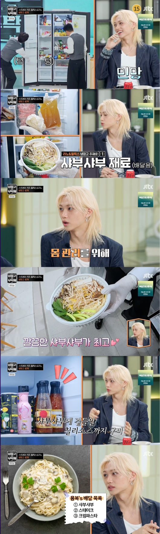 이어 필릭스와 리노의 식재료가 가득한 냉장고가 공개됐다. 특히 필릭스의 냉장고에는 샤부샤부 재료가 가득했는데, 필릭스는 "관리 차원에서 자주 먹는다"고 밝히며 철저한 자기관리 모습을 보였다.