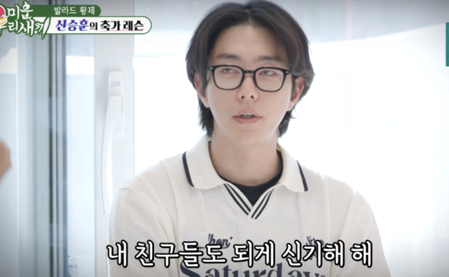 이 가운데 윤현민은 “사실 부탁할게 있다”며 “축가”라고 조심스럽게 입을 뗐다. 윤현민은 부모님의 이혼 후 아버지의 재혼으로 생긴 이복동생의 결혼식 축가를 맡게 됐다며, 신승훈에게 축가 티칭을 부탁던 것.