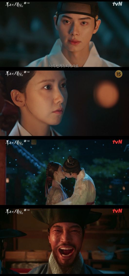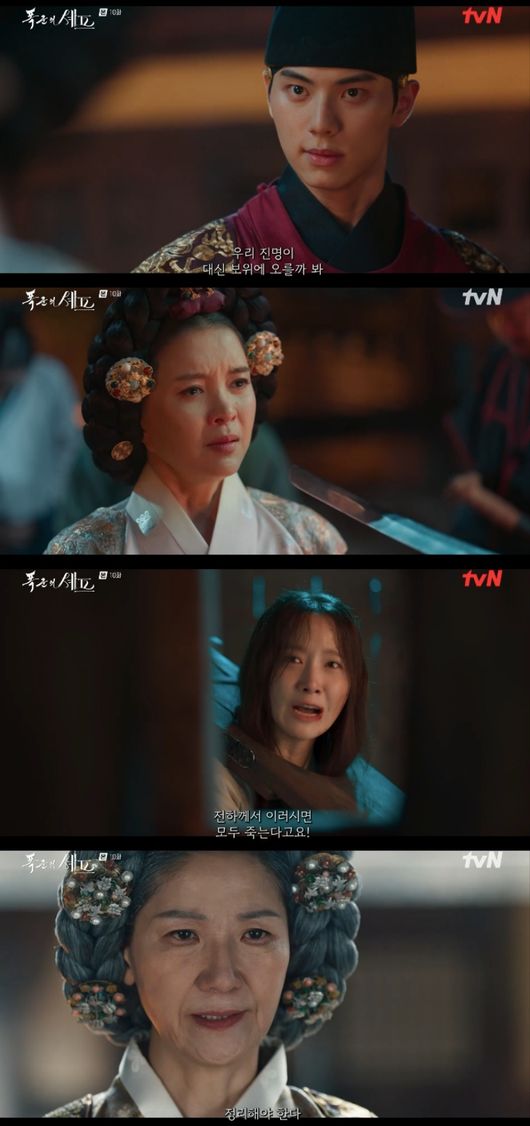 같은 시각, 제산대군(최귀화 분)은 이장균과 외조모를 공개하며 “바로 저 인형 안에 폐비가 사사될 때 흘린 피 묻은 적삼 말입니다. 이제 곧 백일 하에 모든 것이 드러나게 될 것이요. 대왕대비의 진찬 바로 그날에. 그날 이성을 잃은 폭군의 광기가 대궐을 피로 물들일 것이요”라고 웃음을 터트렸다.