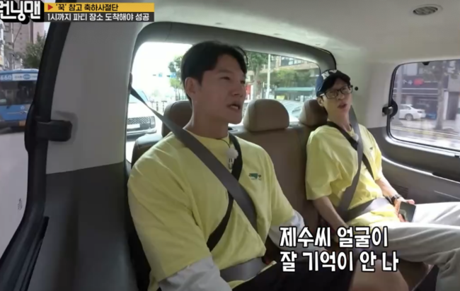 차를 타고 이동했다. 또 김종국 아내에 대해 궁금해하는 분위기가 이어졌고, 지석진은 “주변에서 물어보긴 하더라”며 “근데 내가 안면 기억상실이 있어, 진짜 기억이 안 나더라”고 했다. 그러면서 “단아한 느낌 한복 잘 어울렸다”고 하자모두 “어머니랑 헷갈리는거 아니냐 , 아내분 한복 안 입었다”고 폭소하게 했다.
