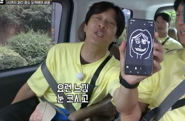 지석진은 다시 “이해심 많을 거 같더라”고 수습하기도. 그러자 옆에 있던 차태현은 갑자기 김종국 아내의 몽타주를 공개했다.그러면서 “눈이 크고 예쁘다 무쌍 아니더라”고 했고, 지석진도 “제수씨 얼굴 바로 이거보고 기억났다”고 했다. 유재석은 “형님 그만해라”고 하자 지석진도 “차태현이 옆에서 바람 넣으면 안 돼,통제 안 되는 애다”고 했다. 차태현은 계속해서 꿋꿋하게 김종국 아내 몽타주를 수정하더니“갸름하게 그려야해 V라인이다”고 정정했다. 유재석은 “태현이 그만 그려라 저거 왜 저러냐”며 폭소, 그럼에도 이날 차태현의 활약은 계속됐다.