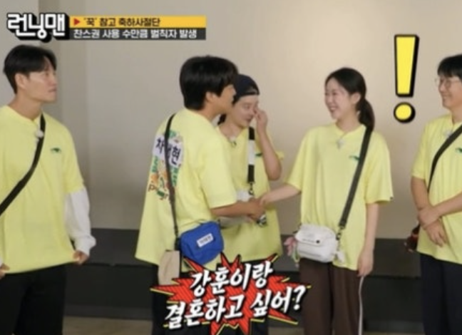 ‘‘런닝맨’이 김종국의 결혼을 축하하는 ‘꾹 참고 축하사절단’ 레이스로 꾸며진 가운데, 과거 핑크빛 러브라인으로 주목받았던 지예은과 강훈의 이름이 다시 소환돼 화제를 모았다.