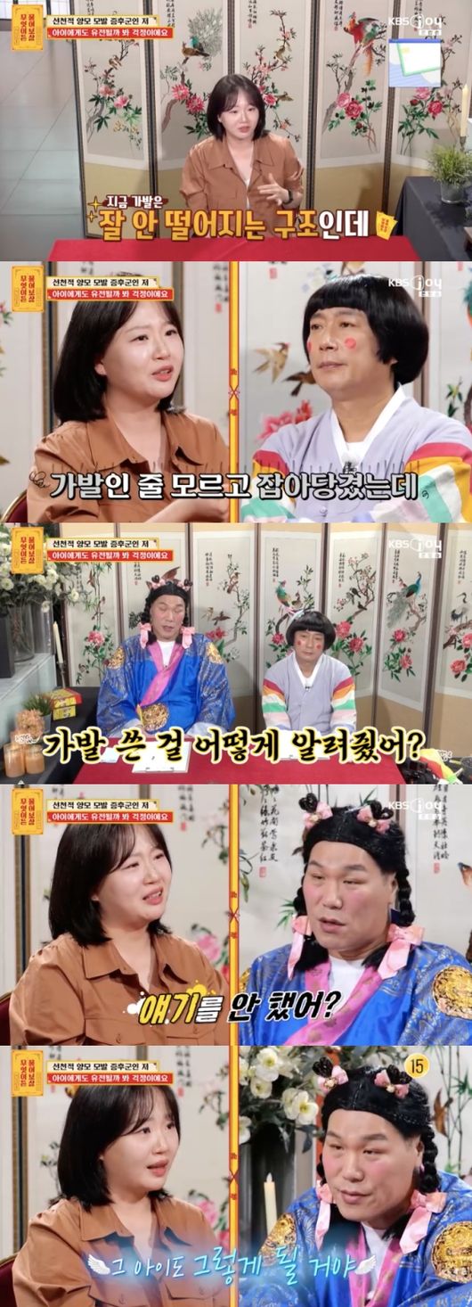 사연자는 원인 불명의 이유로 아기 때부터 머리카락이 자라지 않았고 5살부터 가발을 쓰기 시작했다고 밝혔다. 사연자는 현재 태어난 지 7개월 된 아기가 있다며 아기가 자신을 닮진 않을까, 아기가 자신이 가발을 쓴 사실을 알고 놀라지 않을까 걱정이 된다고 말했다.