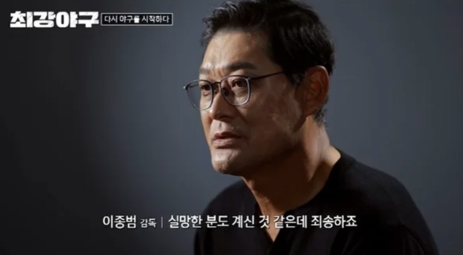 22일 오후 방송된 JTBC 예능 프로그램 ‘최강야구’에서 이종범 감독은 제작진과의 인터뷰에서 "조금 힘든 시간을 보냈다. 쉽지 않은 결정이었다”며 “프로야구에 종사한 지 32년이 됐는데, 갑자기 다른 방향으로 흘러가면서 실망한 분들도 계셨을 것 같다. 그 점에 대해선 죄송하다”고 말했다.