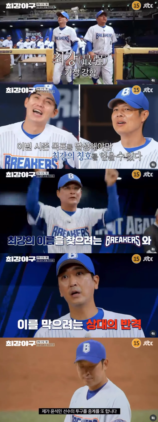지난 22일 방송된 ‘최강야구’에선 기존의 몬스터즈가 아닌 새 시즌을 맞아 새롭게 출범한 브레이커스의 첫 이야기가 담겼다. 이종범 감독을 중심으로 심수창-장성호 코치와 김태균, 윤석민(투수), 오주원, 윤길현, 허도환, 이대형, 나주환, 윤석민(타자), 권혁, 이현승, 나지완, 오현택, 윤희상, 최진행 등이 대학 야구 강호 동원과학기술대학교와 첫 공식 경기를 치렀다.