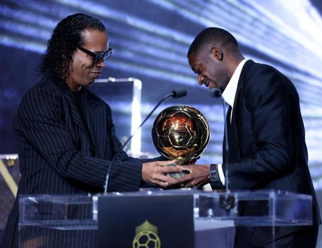 뎀벨레는 23일(한국시간) 프랑스 파리 샤틀레 극장에서 열린 2025 발롱도르 시상식에서 라민 야말(바르셀로나)과 팀 동료 비티냐를 제치고 올해 남자 발롱도르 수상자로 선정됐다.