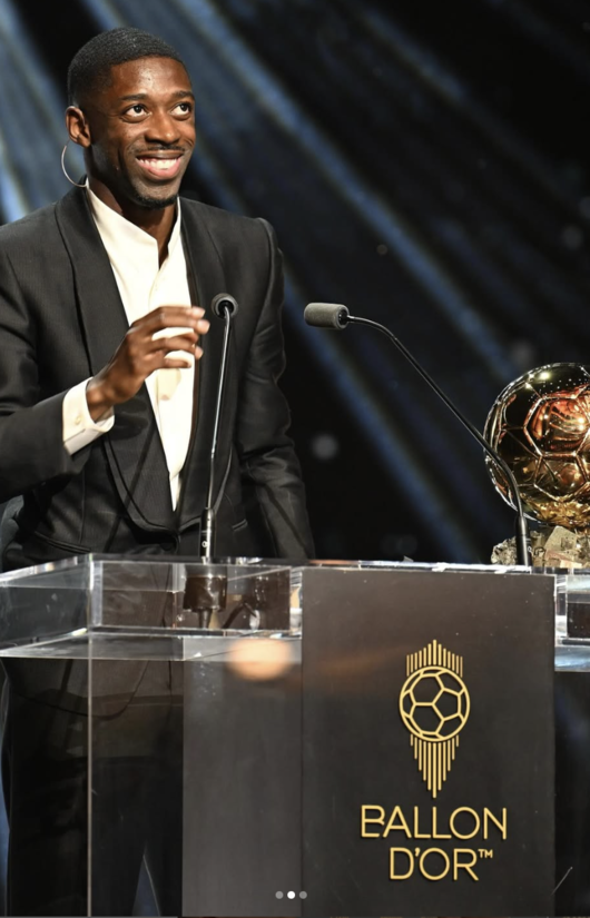 시상대에 오른 뎀벨레는 감격을 감추지 못했다. 호나우지뉴에게 트로피를 건네받으며 눈시울을 붉힌 그는 “말로 표현할 수 없다. PSG가 내 인생의 전환점이었다. 구단과 감독, 동료 모두가 가족 같은 존재다. 이 상은 사실상 우리 모두가 함께 이룬 결과”라며 팀에 공을 돌렸다.