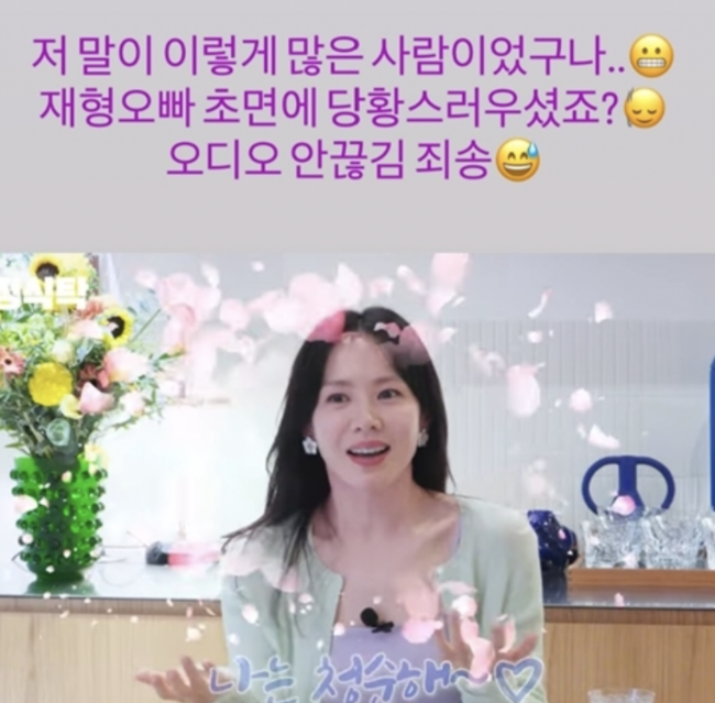 지난 22일 손예진은 자신의 SNS 스토리에 유튜브 채널 ‘요정재형’ 출연 장면을 캡처해 올렸다.