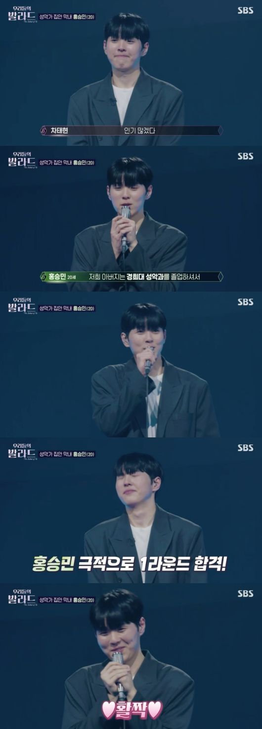 홍승민은 강수지의 ‘흩어진 나날들’을 선보였다. 마지막까지 합격불이 켜지지 않아 모두가 안타까워하던 그때, 극적으로 합격 사인이 켜졌다. 홍승민은 “(불이) 듬성듬성 하길래 ‘여기까진가’ 했다”라고 말했다.