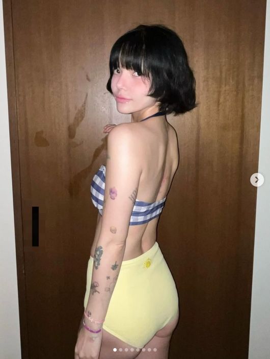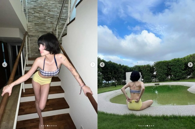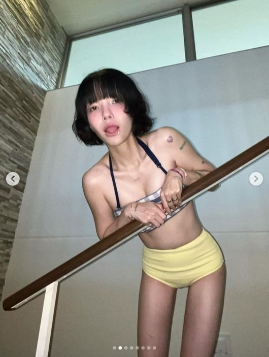 특히 지민은 수영복을 입고 깡마른 몸매를 드러내 눈길을 끌었다. 체크무늬와 노란색의 귀여운 비키니 조합을 택한 지민은 군살 없이 늘씬한 몸매였다. 가는 팔다리와 잘록한 허리라인으로 걸그룹 시절 몸매를 뽐낸 지민이었다.