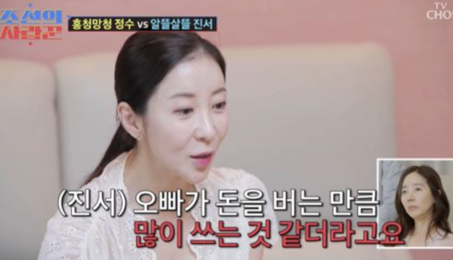 이 와 관련, 예비 신부 원진서는 “집이 너무 넓다. 월세도 아깝고 부담스러우니 좀 줄여서 전세로 가야 하지 않냐”고 현실적인 조언을 건네며 ‘알뜰살림꾼’ 면모를 드러냈다. 또 윤정수의 소비 습관을 지적하며 “쓸데없는 거 사지 마라”고 애정 어린 잔소리를 쏟아내 웃음을 자아냈다.