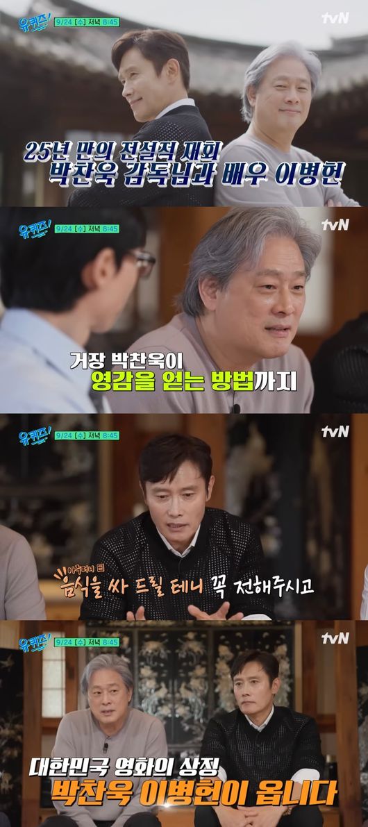 24일 영화 '어쩔수가없다'(감독 박찬욱, 제공/배급 CJ ENM, 제작 모호필름/CJ ENM 스튜디오스) 측은 이날 저녁 방송되는 tvN 예능 '유 퀴즈 온 더 블럭(약칭 유퀴즈)'에 작품의 주역인 박찬욱 감독과 이병헌이 게스트로 출연한다고 밝혔다.
