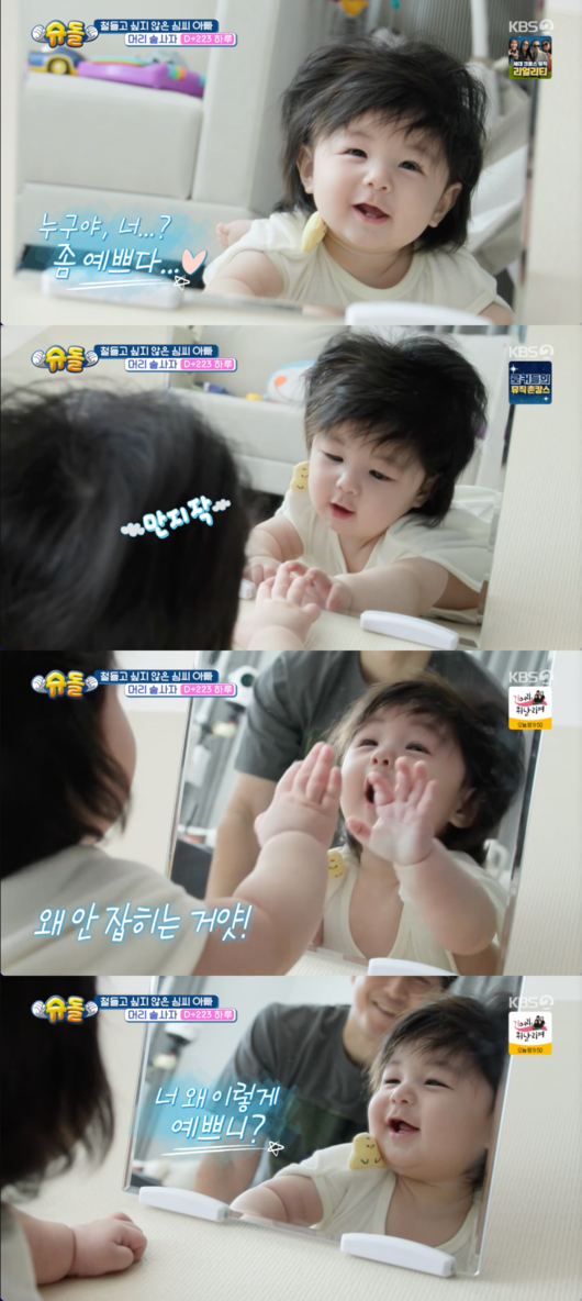 이날 심형탁은 하루와 놀아주기 위해 병원에서 추천받은 '거울 놀이'를 준비했다. 그는 커다란 거울을 꺼내왔고, 거울에 비친 자신의 모습을 본 하루는 환하게 웃었다.