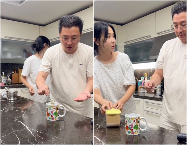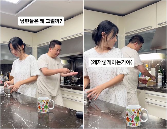 영상 속에서 이지혜는 부엌에서 요리를 하고 있고, 남편 문제완은 커피를 마시려 하고 있는데 굳이 설탕을 멀리에 두고 한 스푼씩 가져오느라 힘을 뺀다. 이를 지켜보는 이지혜는 어이없다는 표정과 함께 “(왜저렇게 하는거야)”라는 자막을 더해 웃음을 자아냈다.