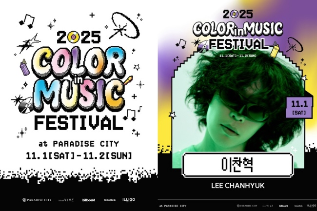 25일 주최사 빌보드코리아는 오는 11월 1일과 2일 인천 파라다이스시티에서 열리는 '2025 컬러 인 뮤직 페스티벌(2025 Color in Music Festival, 이하 CMF)'의 라인업에 이찬혁이 합류했다고 밝혔다. 이찬혁은 1일 차 무대에 올라 '컬러(Color)'라는 'CMF'의 정체성과 맞닿은 또 다른 예술적 서사를 선보일 예정이다.