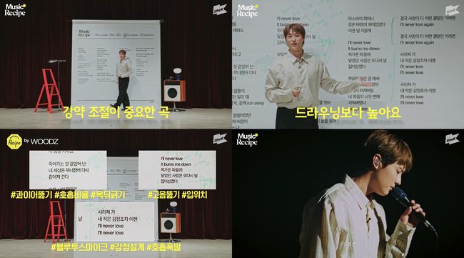 우즈가 24일(수) 공개된 글로벌 대표 K팝 미디어 1theK(원더케이)의 오리지널 콘텐츠 '뮤직레시피'에 출연해 귀에 쏙쏙 박히는 알찬 보컬 강의로 3400만 글로벌 리스너들의 마음을 흔들었다. '뮤직레시피'는 아티스트가 일일 보컬 강사로 나서, 직접 자신의 곡을 가장 잘 부를 수 있는 깨알 같은 꿀팁을 전수하는 보컬 수업형 콘텐츠. 앞서 가수 겸 뮤지컬 배우 이창섭, 씨엔블루 정용화, SG워너비 이석훈, NCT 도영 등이 출연해 자신들만의 보컬 노하우를 공유하며 뜨거운 호응을 얻은 바 있다.