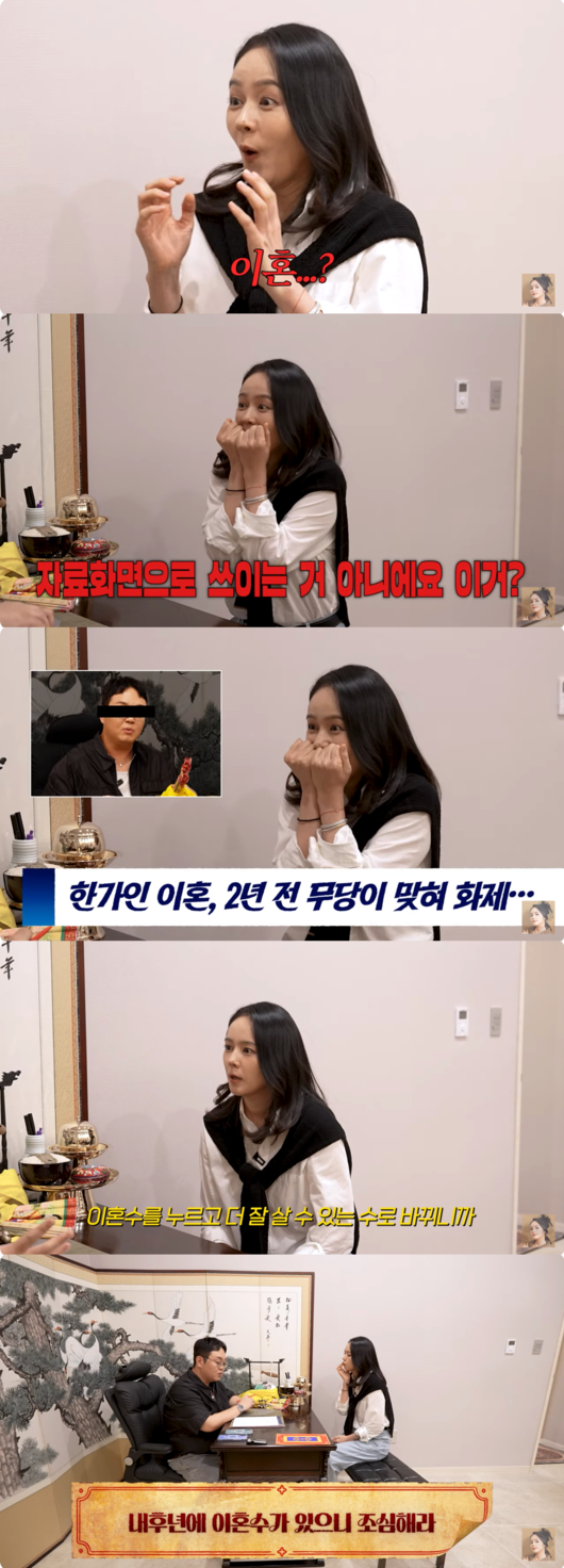 이어 "이때 잘 극복하고 넘어가면 당연히 좋은 건데. 이별수가 있다. 내후년이에요"라고 구체적인 시기까지 언급해 현장을 경악하게 만들었다. 이에 한가인은 "나중에 (이혼하면) 자료 화면으로 쓰이는 거 아니에요?"라고 재치 있는 우려를 표해 웃음을 안겼다.
