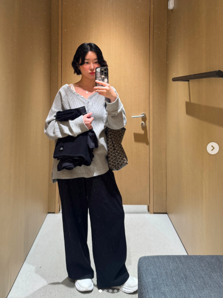 사진 속 레이디제인은 바지에 얇은 회색 니트를 입고 거울 셀카를 탈의실에서 거울 셀카를 찍고 있다. 특히 자유부인이 된 레이디제인은 지인들과 함께 야외에서 길을 걸으며 여유를 만끽한 모습을 담았다.