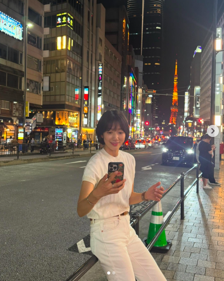사진에는 똑단발 헤어스타일에 올 화이트룩을 선보인 박신혜가 일본 거리에서 포즈를 취하고 있는 모습이 담겼다.