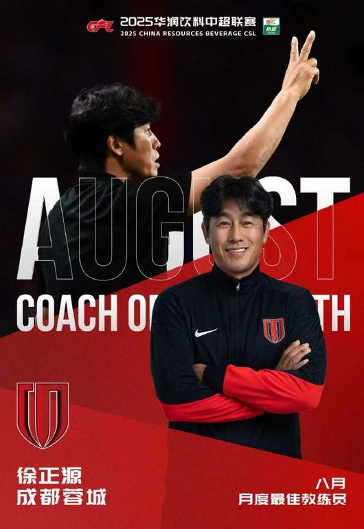중국 '넷이즈'는 25일(한국시간) "청두를 이끌고 3승 1무! 서정원 감독이 CSL 8월 최우수 감독으로 선정됐다. 그는 8월 한 달간 리그 4경기에서 무패를 유지했고, 9득점을 기록하는 동안 단 2골만 허용했다"라고 보도했다.