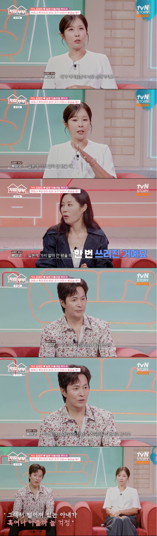 '각집부부’ 가수 김정민이 아내 루미코의 건강 문제로 늘 마음을 졸이고 있다고 고백했다.