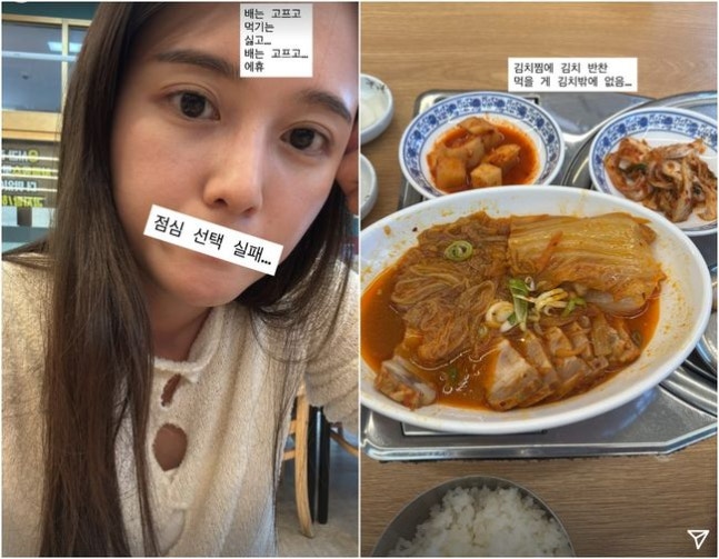 남보라는 24일 자신의 인스타그램 스토리를 통해 “배는 고프고 먹기는 싫고… 점심 선택 실패”라는 글과 함께 사진을 게재했다. 공개된 사진 속 그는 아쉬움 가득한 표정으로 식사를 앞둔 상황을 전했다.