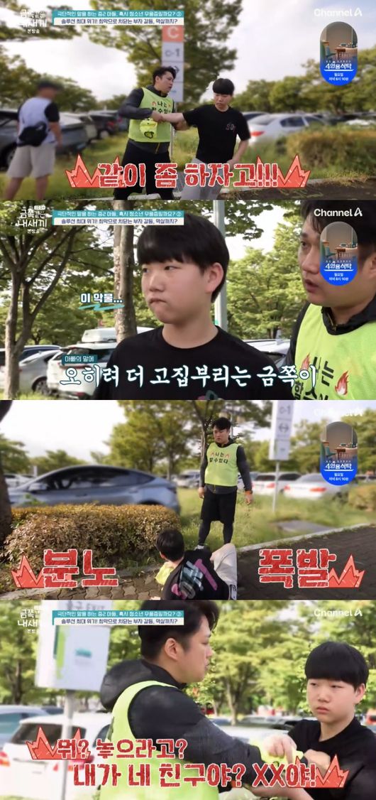 아들이 힘으로 버티자 아빠는 “열받게 하네 진짜”라며 금쪽이를 힘으로 넘어트렸다. 이에 금쪽이는 “냅두라고요. XX. 손 놓으라고”이라고 욕했고, 아빠는 “내가 네 친구야?”라며 급기야 멱살까지 잡아 모두를 경악하게 만들었다.