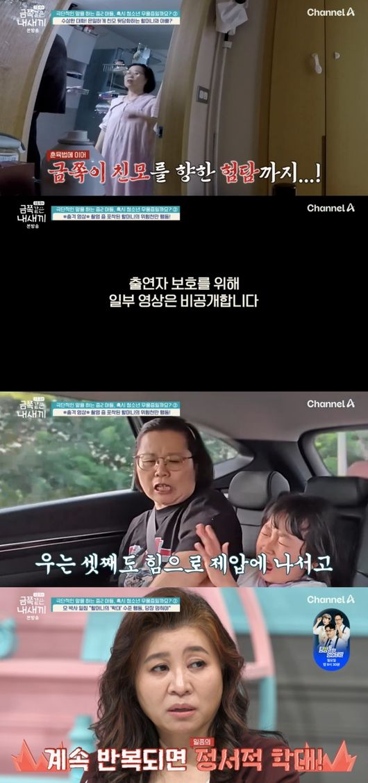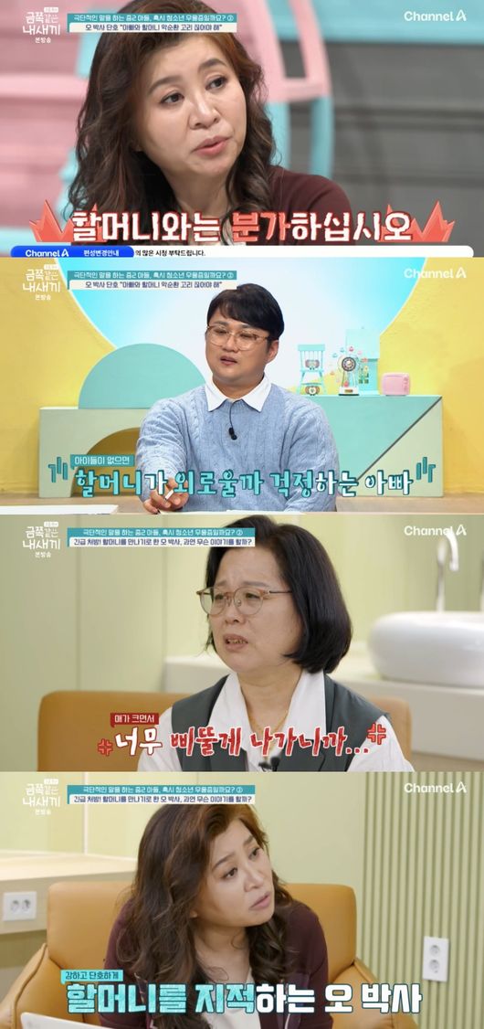 26일 방송된 채널A ‘요즘 육아 - 금쪽같은 내 새끼’에서는 지난 주에 이어 극단적인 말을 하는 중2 금쪽이의 사연이 공개된 가운데 오은영 박사가 할머니와 만나는 모습이 그려졌다.