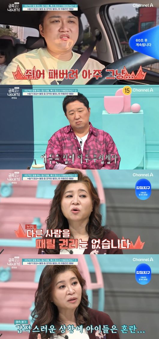 반면 아빠는 그런 할머니를 말리기는 커녕 “엄마, 쥐어 패버려 아주 그냥”이라며 동조해 충격을 더했다. 장영란은 “말리는 줄 알았더니. 애들이 뭘 잘못했냐”라고 했고, 정형돈도 “애들이 집에 있는 게 너무 무섭겠다”라고 말했다.