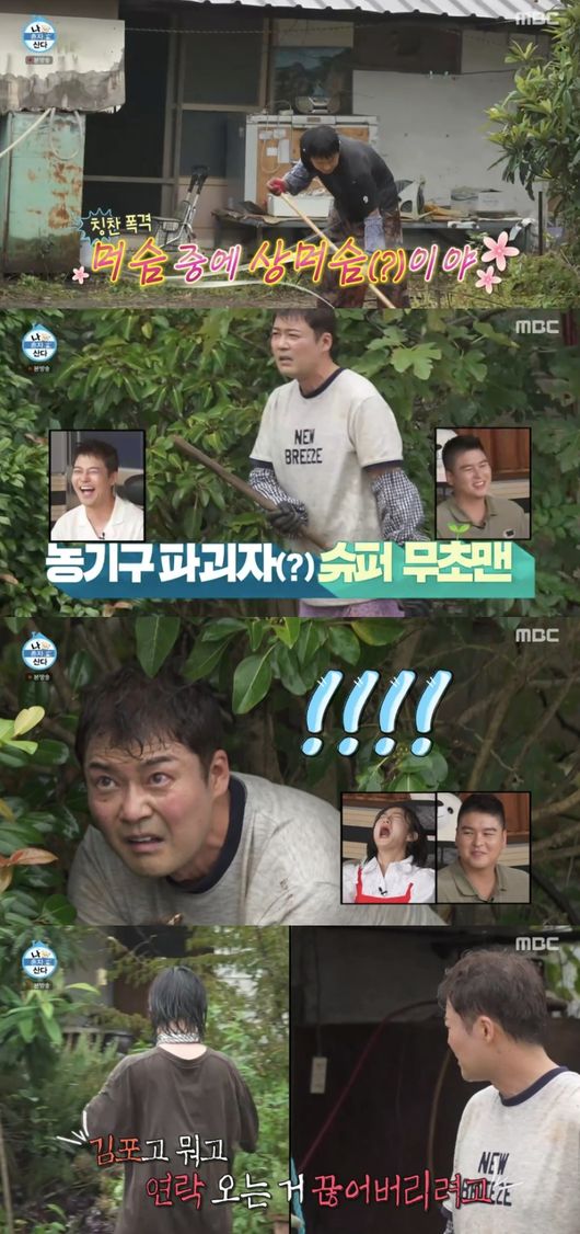 반면 전현무는 한쪽에서 곡소리를 내며 잡초와 사투를 벌였다. 그는 “나는 뿌리에 꽂혀가지고 뿌리를 작살낸 참이었다. ”라고 했지만 삽을 비롯해 각종 농기구를 파괴했다. 이를 본 기안84는 “삽을 아작을 냈네”라고 폭소했다.