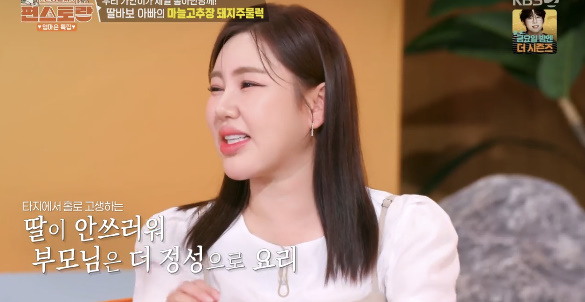 실제 송가인 부모님은 요리를 하면서도 내내 딸 걱정만 했다. 송가인 아버지는 "(송가인이) 요즘 살이 더 빠져서 걱정이다. 바람 불면 날아갈 것 같다"라고 말하기도. 송가인 어머니 역시 전국팔도를 돌아다니는 딸에 "소리하는 사람은 배가 든든해야 하는데 짠하다, 뱃심없으면 소리가 안 나온다"라고 걱정했다. 그렇기에 더더욱 정성스럽게 요리를 준비한 것